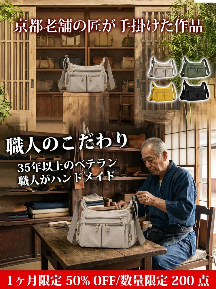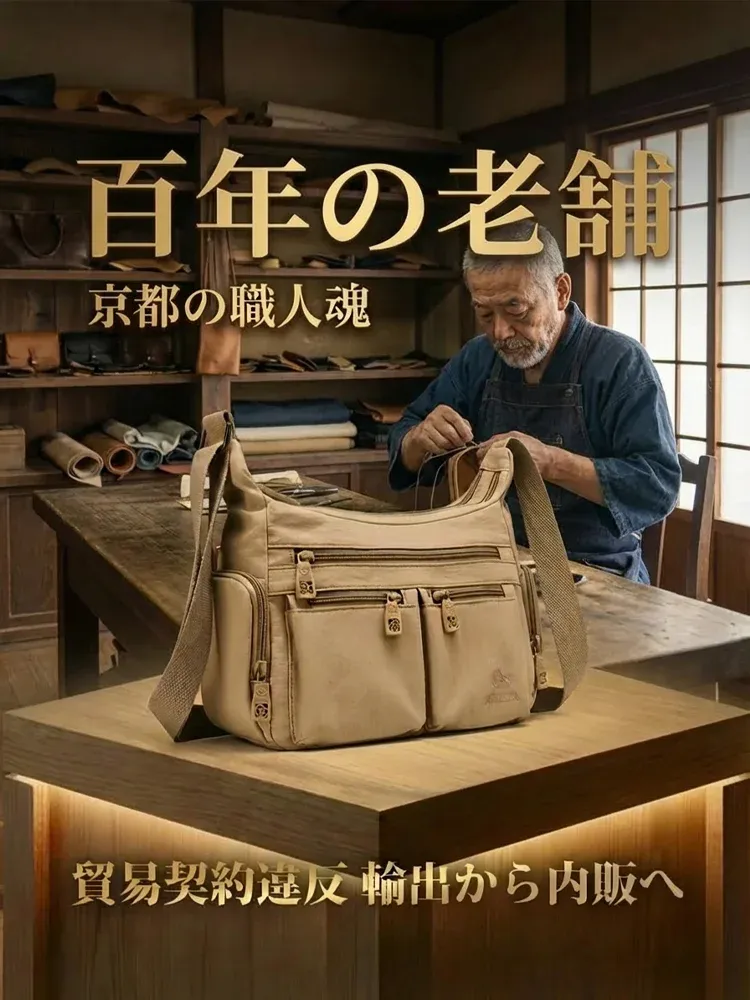京都の老舗工房が海外高級ブランドのために製造した「3WAY多機能バッグ」。貿易契約の突如キャンセルにより、行き場を失った最高傑作を、工匠たちの給料を支払うため「原価割れ」の緊急価格で放出しま👜 「収納の魔法」をその手に。 13ポケットの超科学的設計で、タブレット、水筒、折りたたみ傘、化粧ポーチもスッキリ。たっぷり入るのに、見た目は驚くほどスリムでコンパクトなまま。す!
