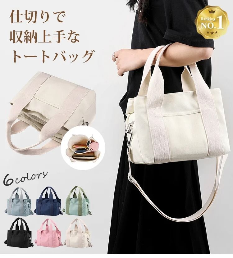 内側仕切り付きキャンバスミニトートバッグ
