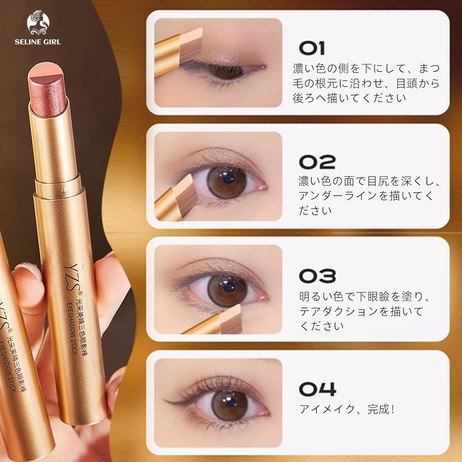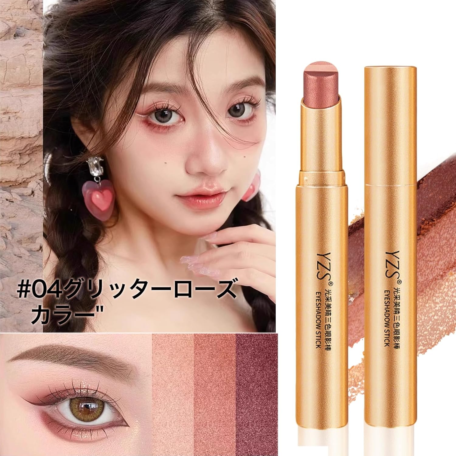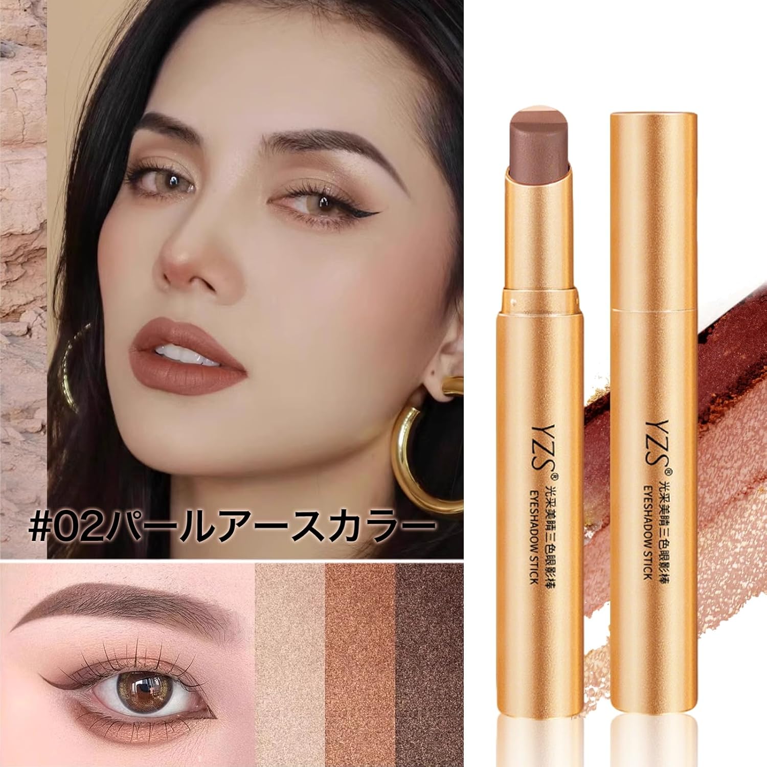 アイシャドウスティック 3色 グラデーション 12時間ウォータープルーフ 耐汗・耐油 高密着(マット仕上げ) ナチュラルベアメイク 涙袋 高発色 伸びる 初心者向け