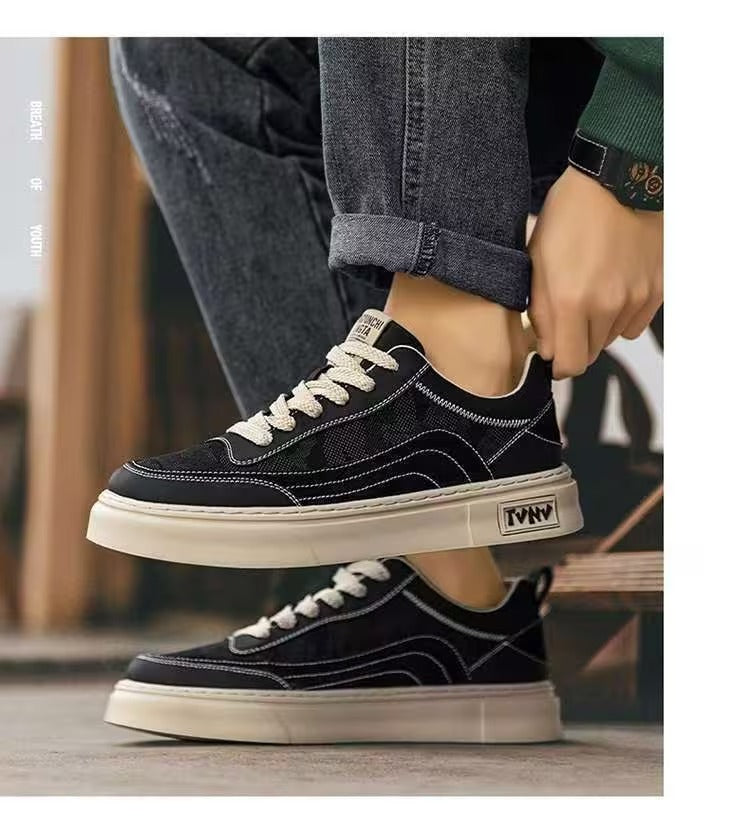 キャンバス メンズシューズ 秋用 通気性 防臭 ブラッククロスシューズ 人気迷彩スニーカー 滑り止め 身長アップ カジュアルスポーツ トレンドシューズ