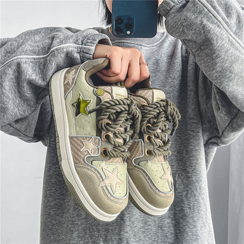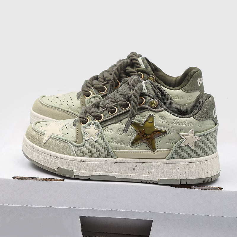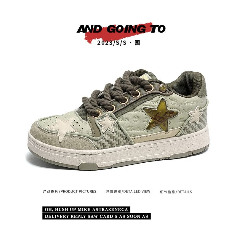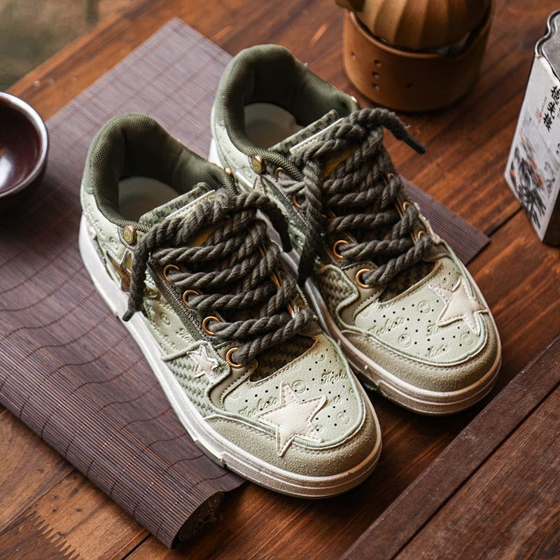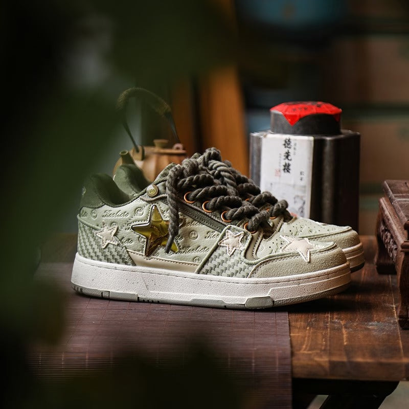 【ユニークデザイン】西湖龍井星スニーカー | 夏のカップルスタイル ローカット 通気性 高さアップスニーカー(ファブリックアッパー&ソール)
