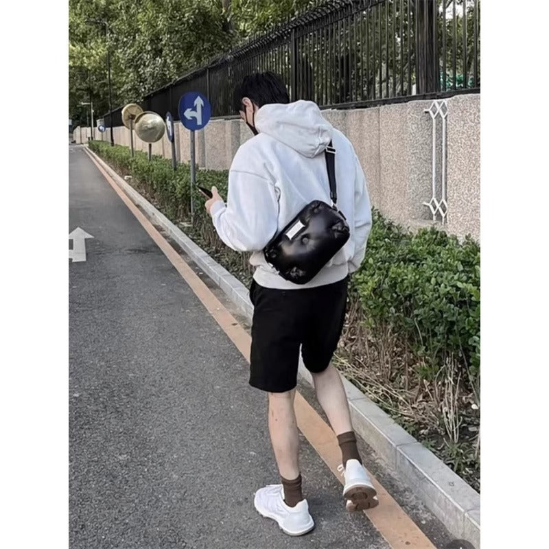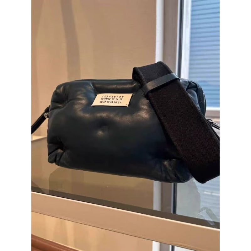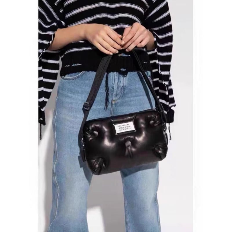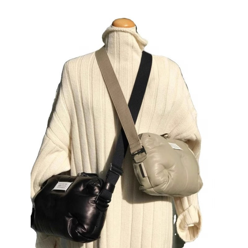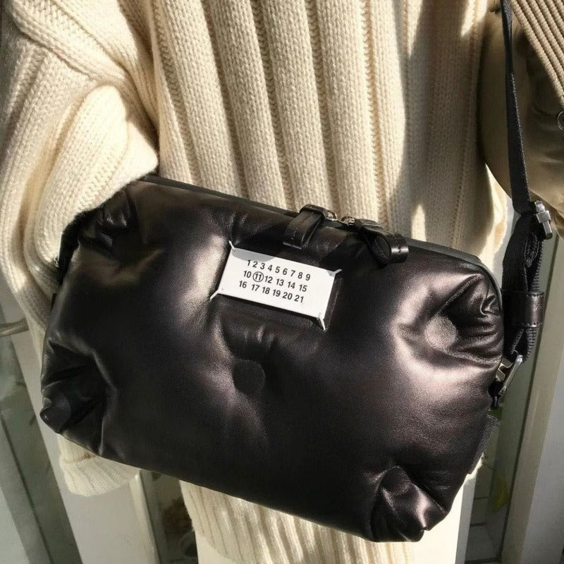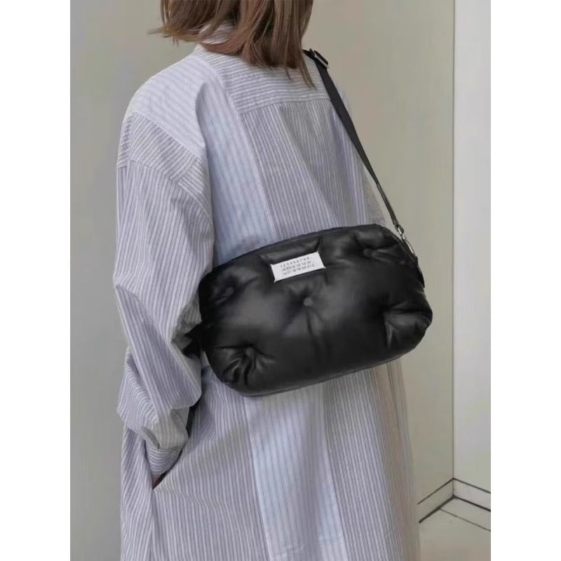 レディース本革風ナイロンクロスボディバッグ - 2024年新作パッド入りピローストラップ付きパース、リストストラップ、ゴールドトーンバックルクロージャー、ホワイト&ブラックミニマリストデザイン - 手洗い可能なシープスキンテクスチャーハンドバッグ、日常使い&特別な日に最適