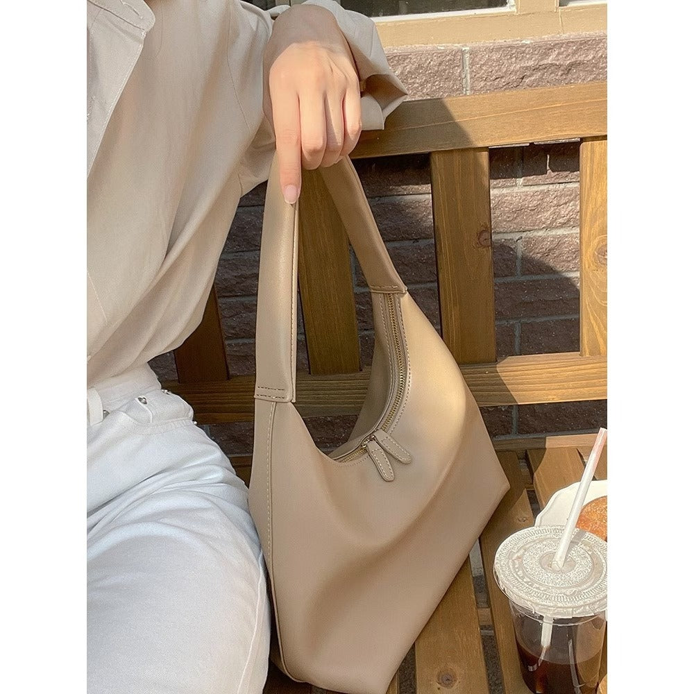 レディース用ソフトトートバッグ レトロシンプルファッション シングルショルダー 餃子バッグ ニッチデザイン 大容量 通勤用