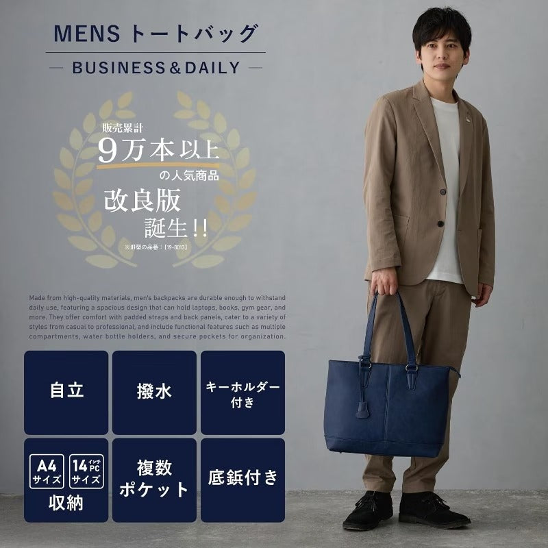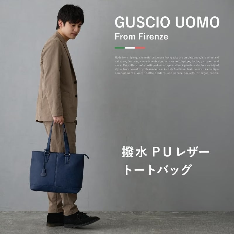 【Gusio Italy 19-8091 メンズ トートバッグ】大容量、軽量、PC A4 14インチ対応、ビジネスカジュアル ワーク/スクール/ビジネスに最適